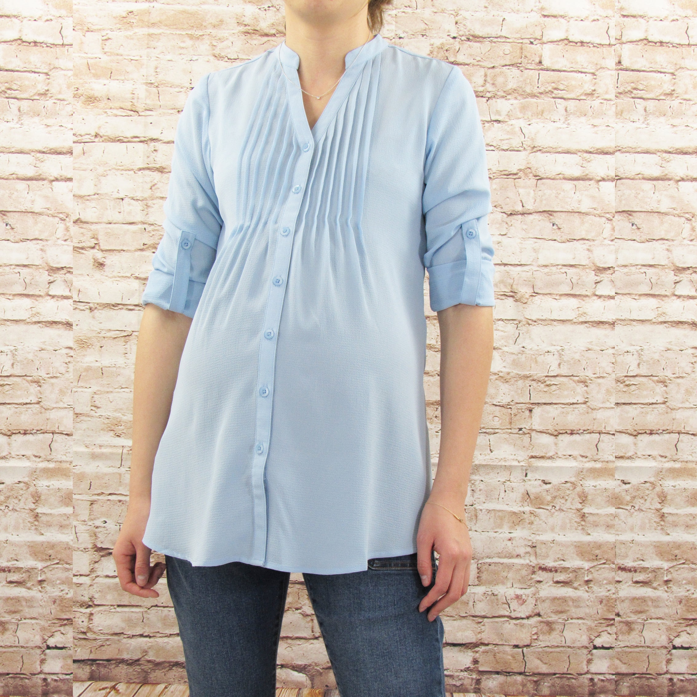 Button Front Pleated Roll Sleeve Maternity And Nursing Top Walmart Com